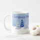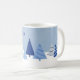 Das blau-whimsikale Weihnachtsbaumdesign "verzweigt" sich von Karten zu Tasse. Dieses einfache, aber lustige Design ist perfekt für Kaffee, Kakao oder jedes beliebige Getränk für den Urlaub.