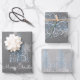 Blaue Weihnachtsbaume und Schneeflocken Geschenkpapier Set
