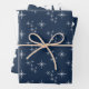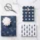 Navy Blue Weihnachtspapier mit Schneeflocken und immergrünen Baummustern. Set mit weißem und blauen Hintergrund, diese Blätter kombinieren einen trendigen und festlichen Stil für Ihre Urlaubsgeschenke.
