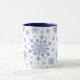 Blaue Weihnachtsschneeflocken im Winter weiß Tasse