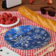 Blaue Weihnachtssterne mit weißem Eiskristall Pappteller