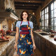 Bringen Sie den Zauber der Ferien in Ihre Küche mit dieser blauen Schürze mit wunderschönen, bunten Vögeln und sternigen Akzenten. Personalisieren Sie es mit Ihrem Namen, um ein einzigartiges festliches Aussehen zu schaffen. Ideal für Bäcker, Koch und Urlauber, die gewollt haben, ihre Kocherfahrung mit lebendiger Eleganz zu bereichern. Handwerklich für Komfort und festlichen Beifall.