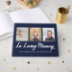 Das Gästebuch des Gottesdienstes in marineblau ist mit drei Fotos deines Liebsten gedruckt. Personalisieren Sie, indem Sie ihren Namen und Lebensjahre schreiben. In liebevoller Erinnerung ist in einem gut aussehenden weißen Schriftart geschrieben.