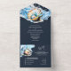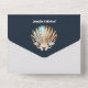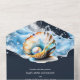 Eine elegante, elegante und schicke Einladung mit einer schönen Muschel, die eine Perle inmitten ihrer Muschel eingebettet hat. Die Muschel ist von einem abstürzenden Meereswasser umgeben und scheint zu funkeln und zu leuchten. Der fett blaue Hintergrund hat weiße Vorlagen, die personalisiert sein können, um Ihre Anforderungen zu Anzug. Sowohl der untere Abriss als auch die Rückklappe haben ebenfalls Muscheln. Alle Muscheln haben eine Mutter Perlenschere zu ihnen. Diese preisgünstige Einladung eignet sich ideal für Hochzeitsfeiern zu den Themen tropische Insel und Strand.