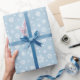 Blaue weiße Schneeflocken Winterurlaub Weihnachten Geschenkpapier