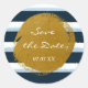 Blaue weiße Streifen und Goldfolie Runder Aufkleber