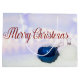 Blaue und weiße Weihnachtsbälle mit Schnee.