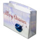 Blaue weiße Weihnachtsbälle, frohe Weihnachten Große Geschenktüte
