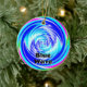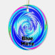 Die blaue abstrakte Kunst wird auf beiden Seiten des Ornaments gedruckt... Sie können die Wörter ändern oder ganz löschen.. Wenn Sie motiviert wären, könnten Sie einen Slogan auf die Vorderseite des Ornaments und einen anderen Slogan auf die Rückseite setzen...