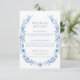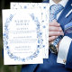 Eleganter romantischer marineblauer Kranz, winziger Blumengarten, Scheune oder Ranch-Hochzeitskarte.