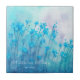 Keramik Kachel mit blass blauer Natur Blumenlandschaft mit blühenden Wildblumen. Vintage Sommer Natur Blumenlandschaft. Silhouetten von Blumenwiese und Himmel. Aquarellmalerei mit geblümten Hintergrund Keramik Fliesen. Blue Wildblumen Collection