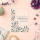 Schöne Blumen Blumen Hochzeitseinladung mit Illustrationen hübscher blauer Wildblumen und Ihren Namen in einem zauberhaften weißen Pinsel-Skript vor einem transparenten Acrylhintergrund für ein einzigartiges Blumenambiente. Bläserne Hochzeitseinladung in Blau und Weiß gegen Acryl mit einem schönen Frühlingslook oder Sommerlook für Ihre Hochzeit mit winzigen blauen Blumen.