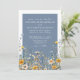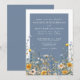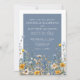 Staubblaue Wildblumen-Hochzeitseinladung mit gelben Blumen. Setzen Sie den Ton für Ihre Hochzeit mit diesem eleganten Design, das auf der Vorderseite einen dunklen Periwinkle-Blau-Hintergrund aufweist, akzentuiert durch einen knackigen weißen Rahmen und weißer Typografie für einen sauberen, raffinierten Kontrast. Die Rückseite der Einladung setzt das Aussehen mit einem massiven, koordinierenden blauen Hintergrund für ein poliertes, kohärentes Finish fort.
