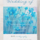 Hochzeitseinladung mit blass blauer Naturlandschaft mit blühenden Wildblumen. Vintage Sommer Natur Blumenlandschaft. Silhouetten von Blumenwiese und Himmel. Aquarellmalerei floralen Hintergrund Hochzeit Einladung. Blue Wildblumen Collection