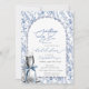 Diese elegante Einladung besticht durch einen zauberhaften blauen Bogen, Perlen und Prosecco sowie blauen Blumen auf weißem Hintergrund, die sich perfekt für ein "etwas blaues" Brautparty eignen. Diese Brautduscheinladungen sind einfach auf Ihre Veranstaltung zugeschnitten, indem Sie einfach Ihre Details hinzufügen. Die faszinierenden Blumenmotive und die sanften blauen Farbtöne flüstern von etwas Altem, etwas Neues und natürlich etwas Blau.