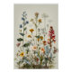 Hohe blaue Spitzen erheben sich neben lebendigen roten Blüten und sonnengelben Blumen in dieser eleganten Wildblumenanordnung. Zarte weiße Akzente und üppige grüne Blätter vervollständigen die Komposition auf einem weichen neutralen Hintergrund und fangen die frische Schönheit einer Sommerwiese ein. Diese klassische botanische Illustration bringt sanfte ländliche Charme und lebendige Farben auf Leinwanddrucke, Grußkarten, Kissen, Tassen und Wohnaccessoires.