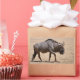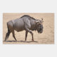 Blaue Wildtiere (Connochaetes taurinus), die auf sandigem Boden laufen, aus dem Profil gesehen