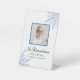 Erinnern Sie sich an das Leben Ihrer Lieben nach ihrem Tod mit dem Elegant Blue Winter Snowflakes Celebration of Life Beuneral Pedestal Sign. Dieses hübsche Tribute Memorial zeichnet sich durch die faszinierenden blauen Schneeflocken aus, die die Ecken mit einem weißen Hintergrund und den Worten In Erinnerung schmücken. Fühlen Sie sich frei, den Text zu ändern und personalisieren Sie ihn mit einem Bild, den Namen des Verstorbenen und Daten.