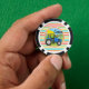 Cooler, niedlicher, blauer Traktor auf farbenfrohen, roten, orangen, gelben, grünen, blauen, weißen Regenbogenstreifen. Personalisieren Sie dieses Kinder Bauer Thema Produkt mit Namen.