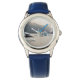 Kinderuhr aus Edelstahl mit blauem Lederarmband