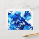 Blaue abstrakte Kunstpostkarte, die mit blauen und weißen Acrylfarben erstellt wurde. Fügen Sie Ihren eigenen Text hinzu, um eine wirklich personalisierte Postkarte für Kunstliebhaber zu erstellen. Entworfen von Künstlerin und Illustratorin Catherine Sweetman.