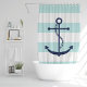 Blauer Anker auf Minzstreifen Duschvorhang