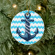 Blauer Anker mit blauen Wellen Keramik Ornament