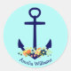 blauer Anker mit Blumenstrauß Runder Aufkleber