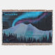 An einer kalten Nacht in Alaska oder Kanada leuchten die Nordlichter über einen schneebedeckten Berg. Fügen Sie Ihren eigenen Text hinzu.