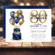 Diese fabelhafte Männer's 80. Geburtstag blaue Kuchen Einladung mit einer 2-Schicht Marine blau und Gold Kuchen mit marineblauen blauen und goldenen Ballons und die Zahl 80 in Gold wäre perfekt, um Ihren Mann, Bruder, Vater, Freund, Onkel, Großvater, Urgroßvater zu feiern. Es ist traditionell und klassisch, frisch, modern und zeitgemäß. Die Rückseite ist eine koordinierende blaue Folie.