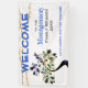 Lassen Sie sich von diesem farbenfrohen Banner mit Vorlagentext und moderner blühender Baumkunst mit glühenden Lichtern auf dem Baum und über dem Banner auf Ihrer nächsten Wiedersehen herzlich willkommen heißen. Personalisieren Sie den gesamten Text, entfernen Sie jeden Text oder bearbeiten Sie ihn mithilfe des Entwurfstools, um einen Schriftstil, eine Schriftgröße und eine Farbe auszuwählen, die Sie möchten. Sie können dieses Design, wo es passend ist, auch zu anderen Party-Produkten hinzufügen, die in den TRANSFER-Scroll-Bar aufgeführt sind, wie z.B. das Schild der Werft oder ein anderes Produkt.