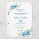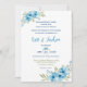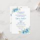 Whimsikalblaue Aquarellfarben-Blumenakzente und optisch ansprechende Schriftart sorgen für eine elegante Hochzeitseinladung, die das Sprichwort "Etwas Altes, Neues, Leihes und etwas Blaues" hervorruft. Dieses Design ist überwiegend formell, mit lässigeren Elementen, die in einem Gewebe verwoben sind, und verbindet nahtlos Vintage und moderne Ästhetik.