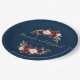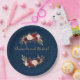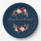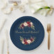 Custom Burgundy Floral Navy Blue Gold Rustic Engagement Party Paper Plate mit Bride und Groom Namen und Hochzeitstag