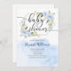 Blauer Blumen Wasserfarben Kinderdusche Einladung
