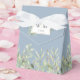 Eine elegante Hochzeitsgeschenkbox mit zarten Aquarellfarben-Blätter auf einem staubblauen Hintergrund, die Ihre Monogramm-Initialen und das besondere Date Set in der modernen Typografie abbildet. Sie können mit Ihrer eigenen Danksagung unter dem Deckel personalisieren. Ein perfekter Weg, um sich bei Ihren Gästen zu bedanken! Entwickelt von Thisisnotme©