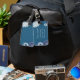 Ein großer Gepäckumbau, der Sie von der Menge heraus stehen lässt. Er kennzeichnet einen blauen Hintergrund mit den weißen und blauen Blumen. Sie fertigen Ihre Informationen in der Mitte besonders an.