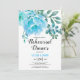 Blaue Aquarellkaktus Blume Frühling und Sommer Blumen Hochzeit Probe Dinner Einladung. Es zeigt einen hübschen Strauß mit Kakteen-Blume und sukkulenten Blätter. Die Rückseite ist massiv grün.