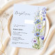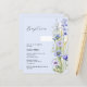 Ein hellblauer Hintergrund mit einem großen, weißen Kreuz mit blauen Blumen. Personalisieren Sie den Namen und Details und fügen Sie diese hinzu. 1 Blatt = 1 Einladung mit Druckkante bis Kante.