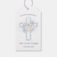 Dieses Design zeigt eine Aquarellbilder eines Kreuzes mit hübschen blauen und weißen Blume. Personalisieren Sie das Datum mit dem Namen und dem Taufdatum des Kindes.