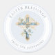 Blauer Blumenkreuz Religiöse Ostersegnung Runder Aufkleber