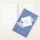 Die Titelseite dieses Notebook-Hochzeitsplaners weist einen rautenförmigen Rahmen auf, in dem Ihr Text in Blau auf weißem Hintergrund angezeigt wird. Um den Rahmen schaut man sich zwei hübsche Blumensträuße in Aquarellfarben mit zarten blauen und beigen Blume und weicher Vegetation an. Unter dem Blumenrahmen befinden sich zwei weiße Textfelder, die Sie anpassen können. Das Bild und der Text werden auf einem dunkelblauen Hintergrund platziert, um die Blume wirklich zum Pop zu bringen. Die Rückseite des Planers hat ein kleineres, passendes Blumendesign in der Mitte, auf dem gleichen blauen Hintergrund. *Dieses Design verwendet Kunstwerke von LABFcreations.