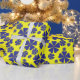 Blauer Blumenstrauß Abstrakt auf gelbem Hintergrun Geschenkpapier