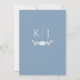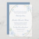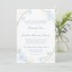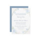 Haupteinladung zur Blue Floral Wreath Collection. Das Design erinnert mit seinen Pastelltönen an einen Frühlingssinn und neue Anfänge. Blaue Aquarellblüten, Weinreben und Blätter bilden einen weißen Hintergrund. Im Gegensatz dazu ist die Rückseite der Karte ein tiefes, staubiges Blau. Probieren Sie dieses Design auf den eleganten Papieroptionen, wie Leinen oder Perlen. Das weiche Papier wird die Feinheit der Blüten erhöhen. Ideal für eine Gartenhochzeit oder eine Frühjahrshochzeit.