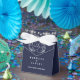 Ein elegantes Hochzeitsgeschenk mit hübschen Saitenlichtern und handgezeichnet Blumenblättern auf marineblau-blauem Hintergrund. Ein perfekter Weg, um sich bei Ihren Gästen zu bedanken! Entwickelt von Thisisnotme©