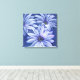 Atemberaubende, blumengeschmückte Osteopermum calenduleae oder afrikanische Blütenmalerei in Blau-, lila-, Lila- und Weißtönen. Ideal, um den Innenbereich mit einer lila blauen Touch zu versehen. Dieser Leinwand stammt von einem originalen Gouache-Gemälde auf dunklem Papier der botanischen Künstlerin Sarah Trett.