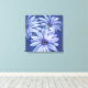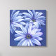 Atemberaubende, blumengeschmückte Osteopermum calenduleae oder afrikanische Blütenmalerei in Blau-, lila-, Lila- und Weißtönen. Ideal, um den Innenbereich mit einer lila blauen Touch zu versehen. Dieser Leinwand stammt von einem originalen Gouache-Gemälde auf dunklem Papier der botanischen Künstlerin Sarah Trett.