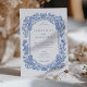 Diese anspruchsvolle Hochzeitseinladung besticht durch ein handgemaltes Blumendesign in einem auffallenden Kobaltblau. Die Blumenmotive umrahmen die Hochzeitsdetails mit einem zarten, naturlich inspirierten Rahmen und schaffen eine elegante und zeitlose Ästhetik. Der saubere, weiße Hintergrund hebt den Kontrast der blauen Blumenelemente hervor, während das minimalistische Layout des Textes dem klassischen Werk eine moderne Touch verleiht. Auf der Rückseite der Karte befindet sich ein einfaches, minimalistisches Monogramm, das ein persönliches und raffiniertes Element hinzufügt. Ideal für traditionelle, rustikale Hochzeiten oder Hochzeiten mit Gartenmotiven vereint diese Einladung die Schönheit der Natur und des Kunsthandwerks mit ihrem detaillierten und eleganten Design.
