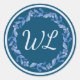 Eleganter, Aquarell, Blumenblume, Blumenkranz auf klassischem Kobaltblau. Ein stylish Skript erstellt ein chic Monogramm, das mit dem Edit-Tool personalisiert werden kann. Dieser exquisite Aufkleber ist eine modische Wahl für all ihren Korrespondenz.
