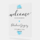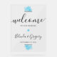 Dieses Design besticht durch elegante, blaue Blume. Die schönen blauen Blume des Bouquets sind auf einer eleganten schwarzen Linie angeordnet. Ein schlichtes, elegantes Aquarellbild von Blume, die über und unter der Formulierung angeordnet sind, mit einer Blume, die die Namen der Braut und des Bräutigams miteinander verbindet. Der elegante Skripttext, der für den Namen der Braut und des Bräutigams verwendet wird, wird mit einem einfachen Schriftart kombiniert. Dieses Design ist ideal für jedes Hochzeitsthema. Das perfekte Design für alle Jahreszeiten. Auch die passenden Hochzeitseinladungen und andere Schreibwaren sind verfügbar.