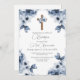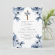 Blauer Blumenstrauß erste kommunion Einladung auf Spanisch für Junge.